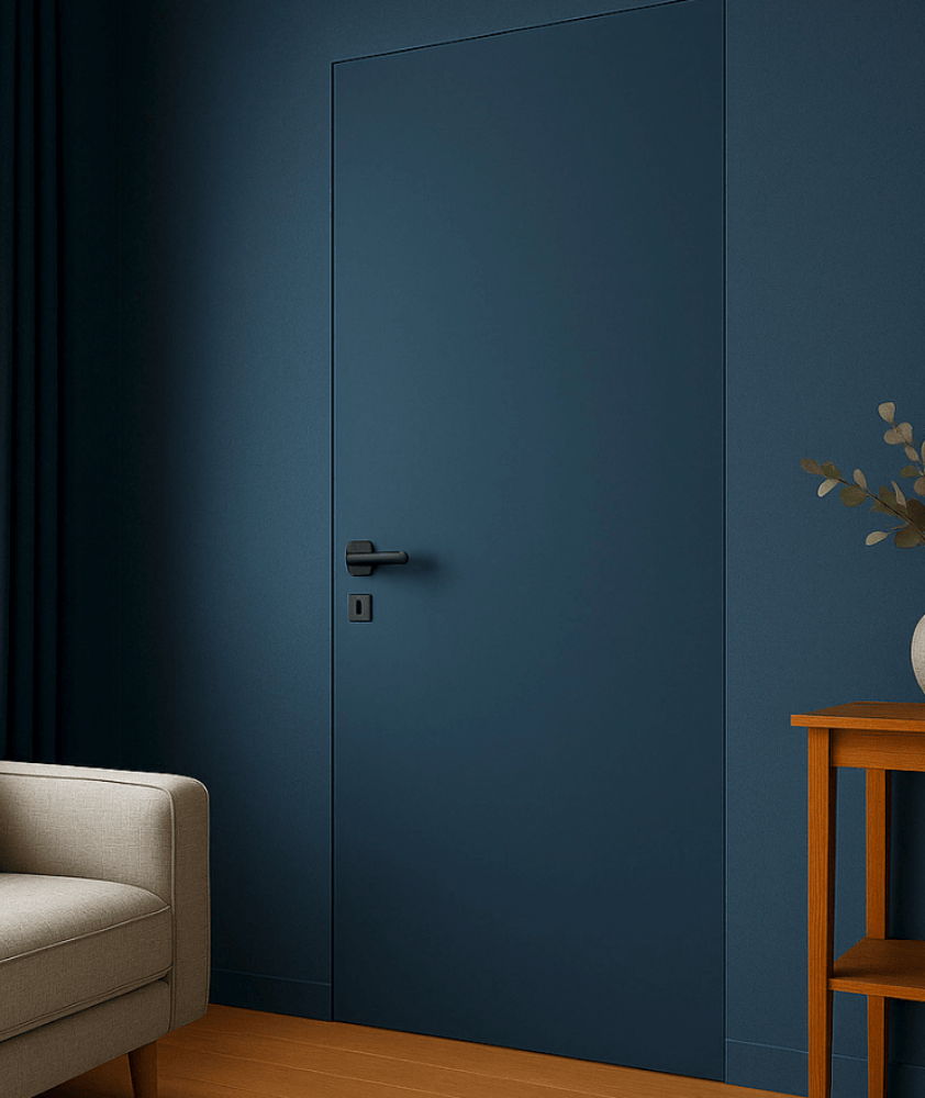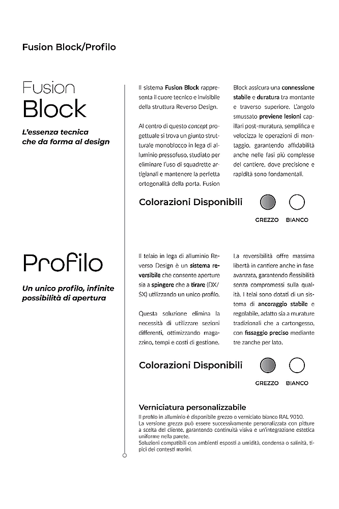 La porta filomuro è fornita con pannello trattato con primer specifico e telaio in alluminio grezzo, ideale per ottenere un perfetto effetto raso muro. Per garantire la massima stabilità e mantenere la perfetta planarità nel tempo, si consiglia di applicare la stessa finitura e lo stesso numero di mani di pittura su entrambi i lati della porta. Su richiesta, con un piccolo supplemento, è disponibile anche il telaio con finitura bianco, pronto per una migliore integrazione con le pareti chiare e per semplificare la fase di installazione e verniciatura.