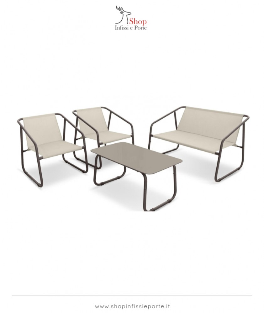 Home » Arredamento Casa » Salotti da giardino » Salotto composto da divano 2 posti con 2 poltrone in acciaio e tavolino rettangolare con piano in vetro