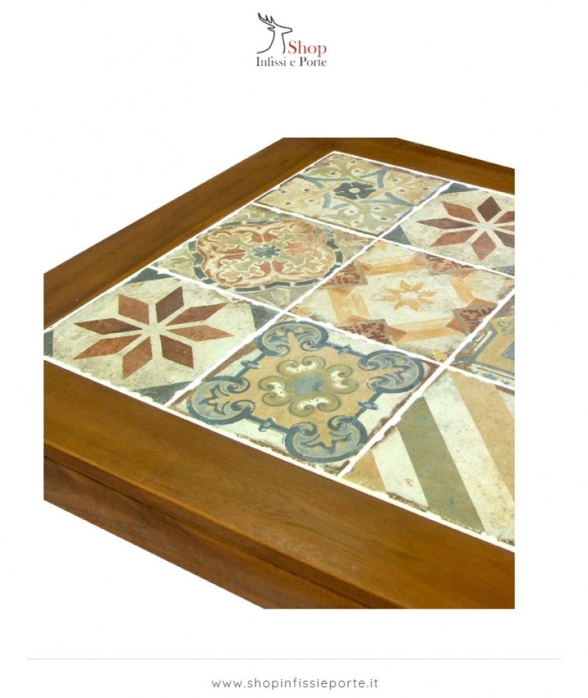 Tavolo quadrato con mattonelle 80x80 cm in legno di acacia