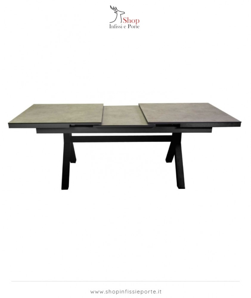 Tavolo rettangolare 180x100 cm ad allungamento centrale 6-8 posti in alluminio e HPL 6 mm