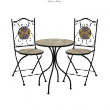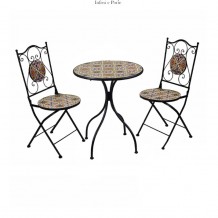 Tavolino circolare in acciaio e 2 sedie decorati con stampa