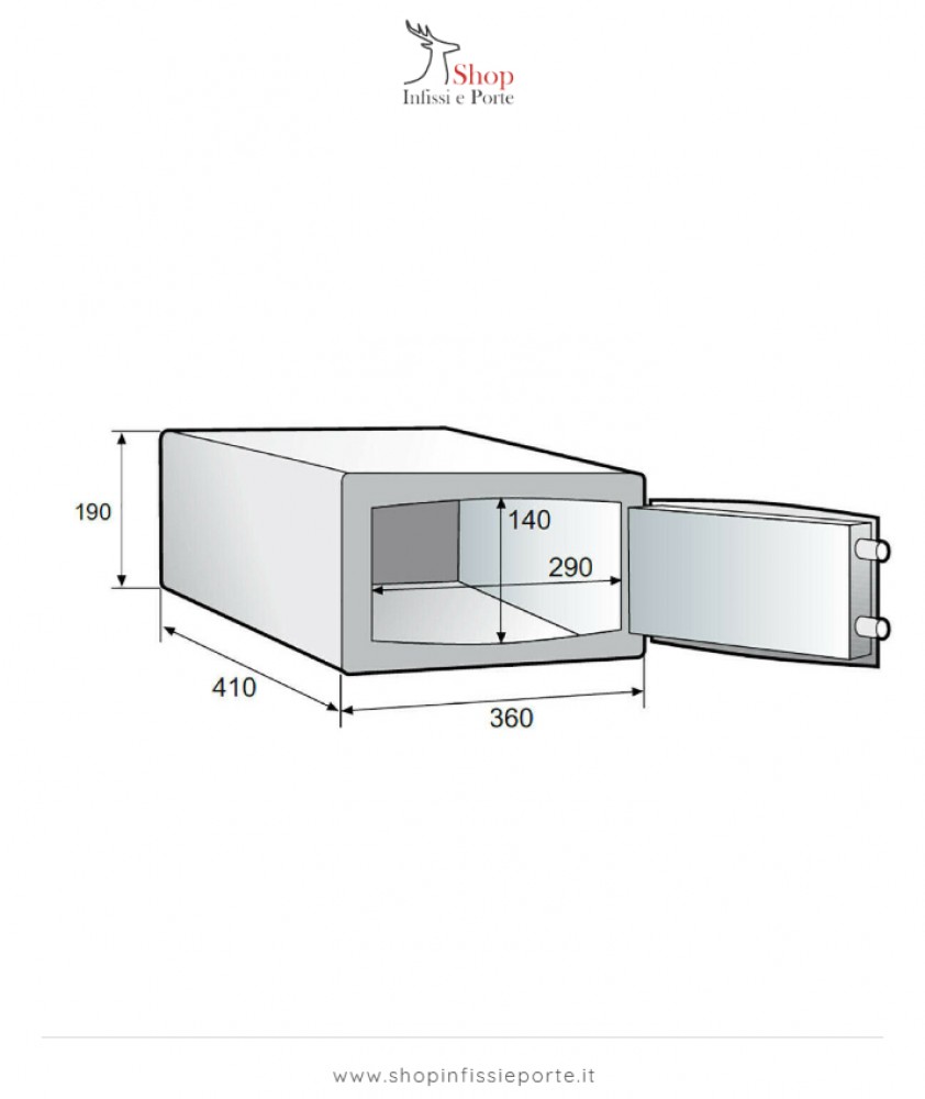 Misure Esterne : L 360 x P 410 x H 190 mm