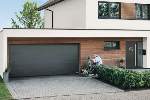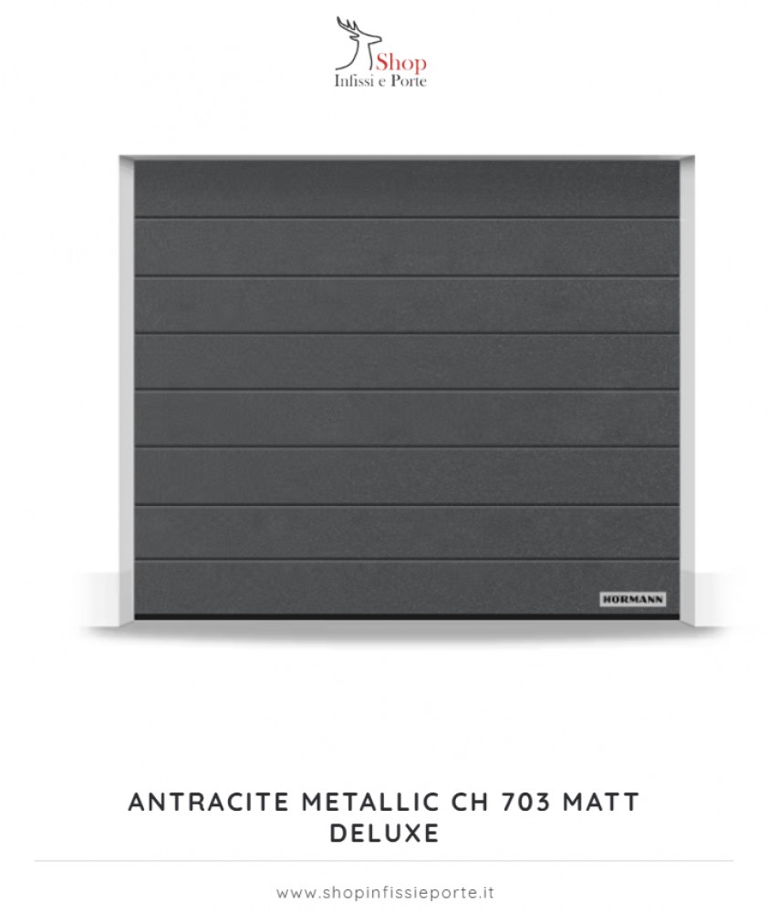Con i portoni sezionali da garage RenoMatic della Hormann puntate ad una coibentazione termica eccellente o molto buona ed inoltre su una maggiore stabilità e silenziosità di scorrimento. Dalla fondazione dell'azienda nel 1935 oltre 20 milioni di portoni sono stati prodotti e consegnati in tutto il mondo. In oltre 40 stabilimenti specializzati in Europa, America del Nord e Asia più di 6000 collaboratori e collaboratrici sviluppano e producono portoni, porte, telai, motorizzazioni, sistemi di controllo degli accessi e soluzioni per il deposito di alta qualità per l'impiego in immobili ad uso privato e commerciale. Il modello RenoMatic è disponibile in diverse finiture e grecature. La superficie Woodgrain si distingue per la venatura ''effetto legno'', disponibile in 6 diversi colori : Bianco traffico ral 9016 / Alluminio brillante ral 9006 / Grigio alluminio ral 9007 / Antracite metallic ch 703 / Grigio antracite ral 7016 / Marrone terra ral 8028. La superficie Decocolor invece si distingue per il suo aspetto simil ''legno naturale'' , disponibile anch' essa in diversi colori : Golden Oak / Dark Oak / Night Oak. Presente inoltre anche la superficie Planar effetto liscio disponibile in 6 diversi colori : Bianco traffico CH 9016 Matt deluxe / Alluminio brillante CH 9006 Matt deluxe/ Grigio alluminio CH 9007 Matt deluxe / Antracite metallic CH 703 Matt deluxe / Grigio antracite CH 7016 Matt deluxe / Marrone terra CH 8028 Matt deluxe.