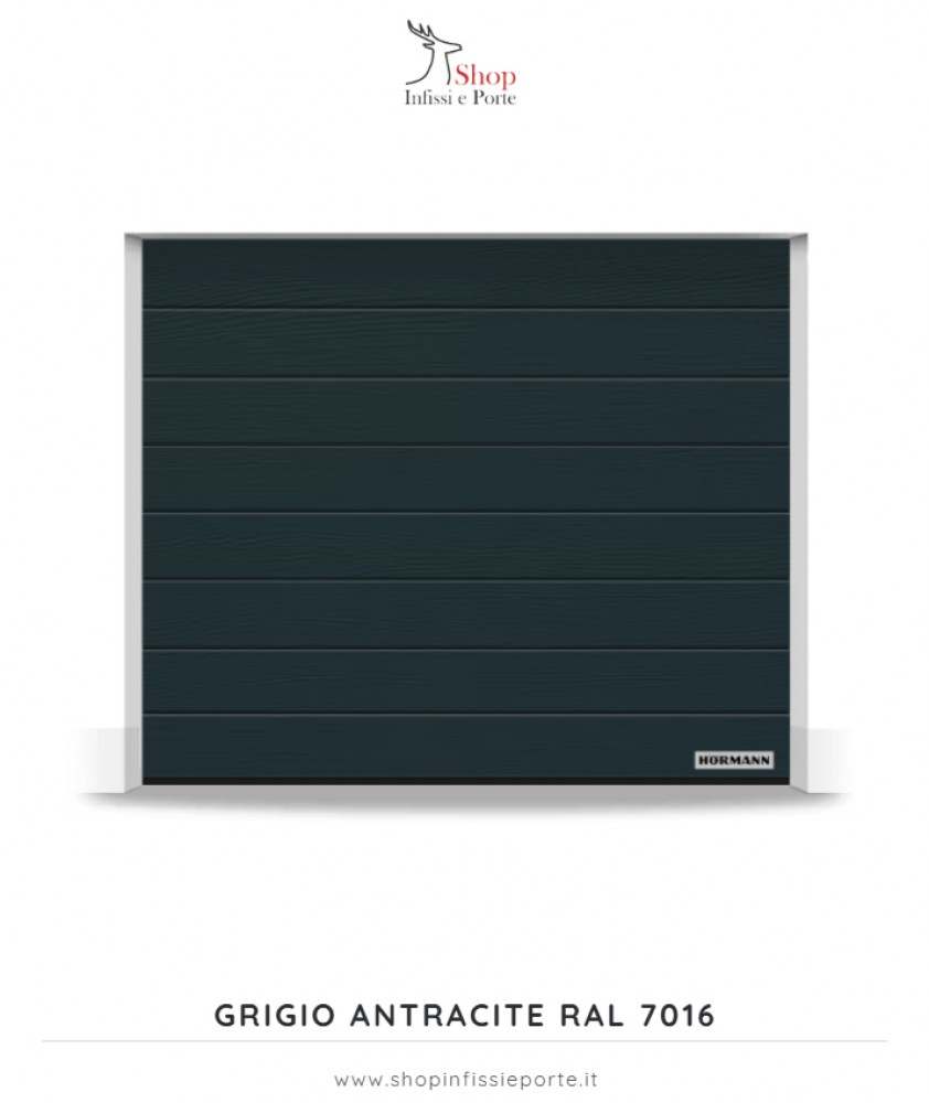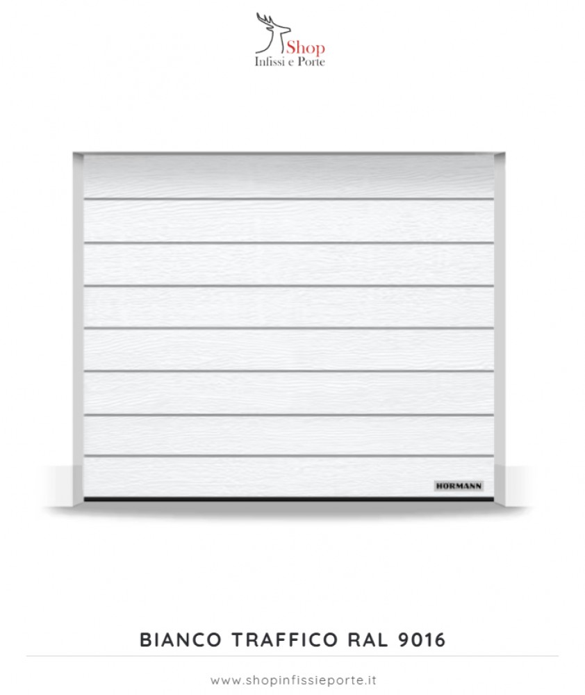 Con i portoni sezionali da garage RenoMatic della Hormann puntate ad una coibentazione termica eccellente o molto buona ed inoltre su una maggiore stabilità e silenziosità di scorrimento. Dalla fondazione dell'azienda nel 1935 oltre 20 milioni di portoni sono stati prodotti e consegnati in tutto il mondo. In oltre 40 stabilimenti specializzati in Europa, America del Nord e Asia più di 6000 collaboratori e collaboratrici sviluppano e producono portoni, porte, telai, motorizzazioni, sistemi di controllo degli accessi e soluzioni per il deposito di alta qualità per l'impiego in immobili ad uso privato e commerciale. Il modello RenoMatic è disponibile in diverse finiture e grecature. La superficie Woodgrain si distingue per la venatura ''effetto legno'', disponibile in 6 diversi colori : Bianco traffico ral 9016 / Alluminio brillante ral 9006 / Grigio alluminio ral 9007 / Antracite metallic ch 703 / Grigio antracite ral 7016 / Marrone terra ral 8028. La superficie Decocolor invece si distingue per il suo aspetto simil ''legno naturale'' , disponibile anch' essa in diversi colori : Golden Oak / Dark Oak / Night Oak. Presente inoltre anche la superficie Planar effetto liscio disponibile in 6 diversi colori : Bianco traffico CH 9016 Matt deluxe / Alluminio brillante CH 9006 Matt deluxe/ Grigio alluminio CH 9007 Matt deluxe / Antracite metallic CH 703 Matt deluxe / Grigio antracite CH 7016 Matt deluxe / Marrone terra CH 8028 Matt deluxe.