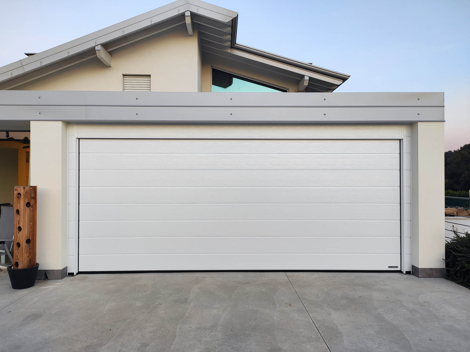 Su richiesta, con supplemento, possibilità di rivestire il telaio (bianco) con lo stesso colore del portone, possibilità di inserimento porta pedonale, finestrature vetrate ed altri accessori come motori diversi da quello fornito di serie, sensore di umidità ecc ecc
