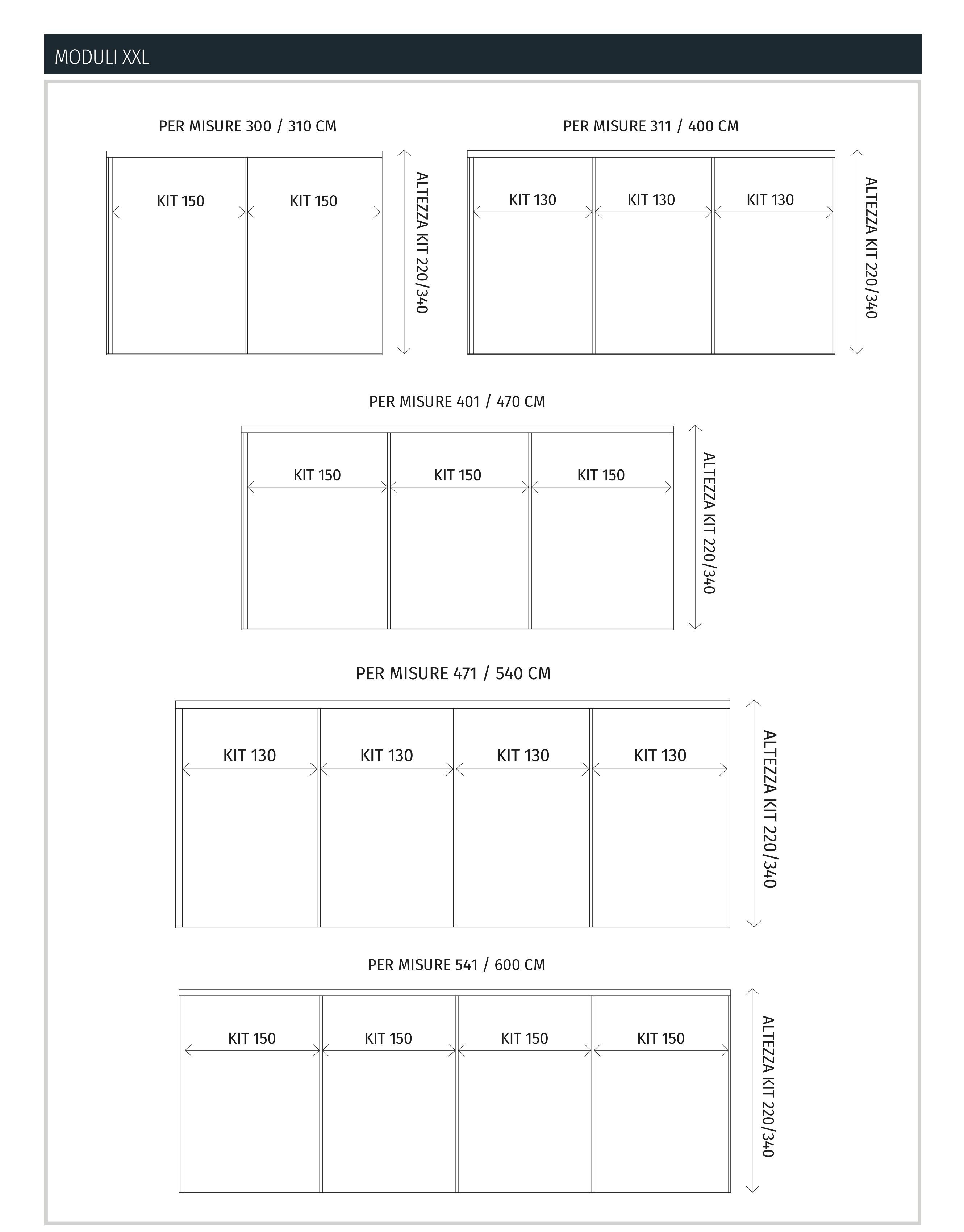 LARGHEZZA MODULI: VARIABILE (MINIMO 980 mm, MASSIMO 1500 mm)